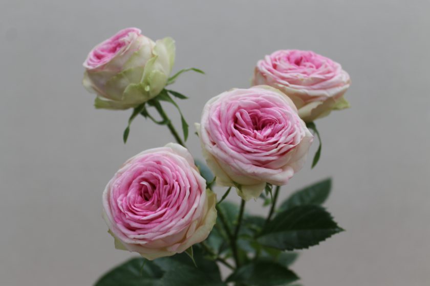 ジェラート 2022-02-05 白地に中心ピンク 2020年 オランダ インタープランツ作出 京成バラ園芸販売 香り 無し 1輪が大きめのボリュームのあるスプレー。 開きがゆっくりのため5分咲き程度での 販売になります。